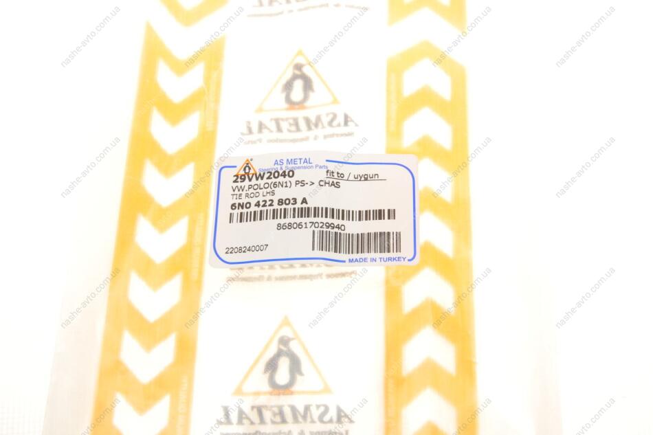 Тяга керма з накінечником кермової тяги ASMETAL 29VW2040