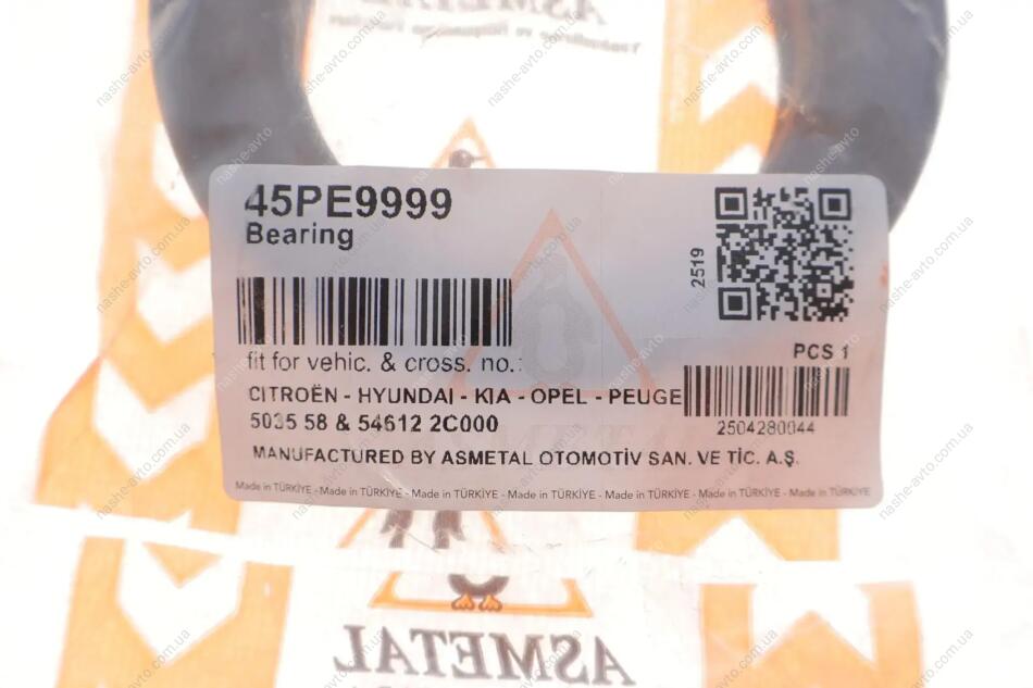 Підшипник опори амортизаційної стійки ASMETAL 45PE9999