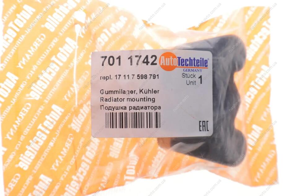 Подушка кріплення радіатора, матеріал гума AUTOTECHTEILE 701 1742