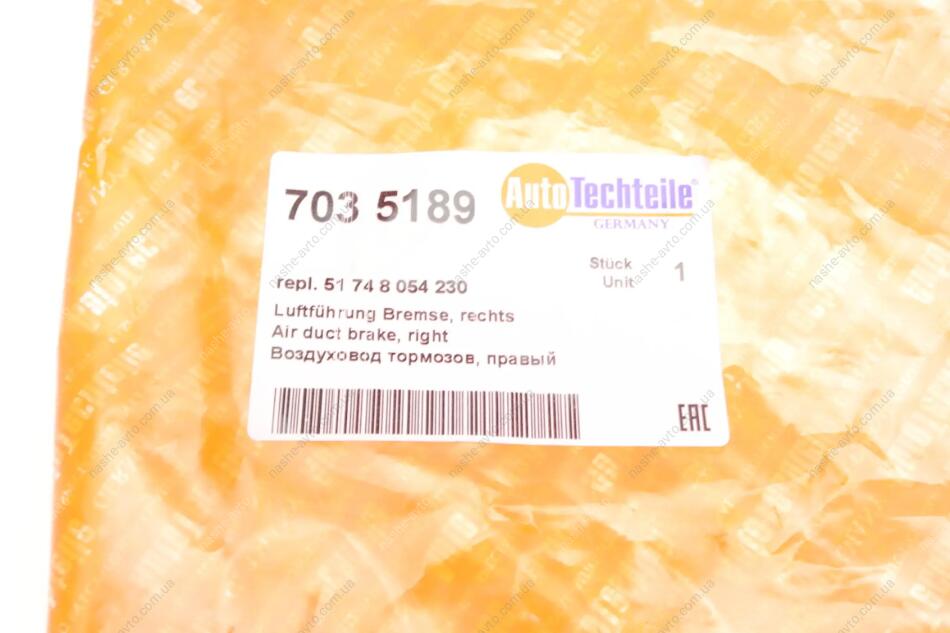 Повітропровід гальм, правий AUTOTECHTEILE 703 5189