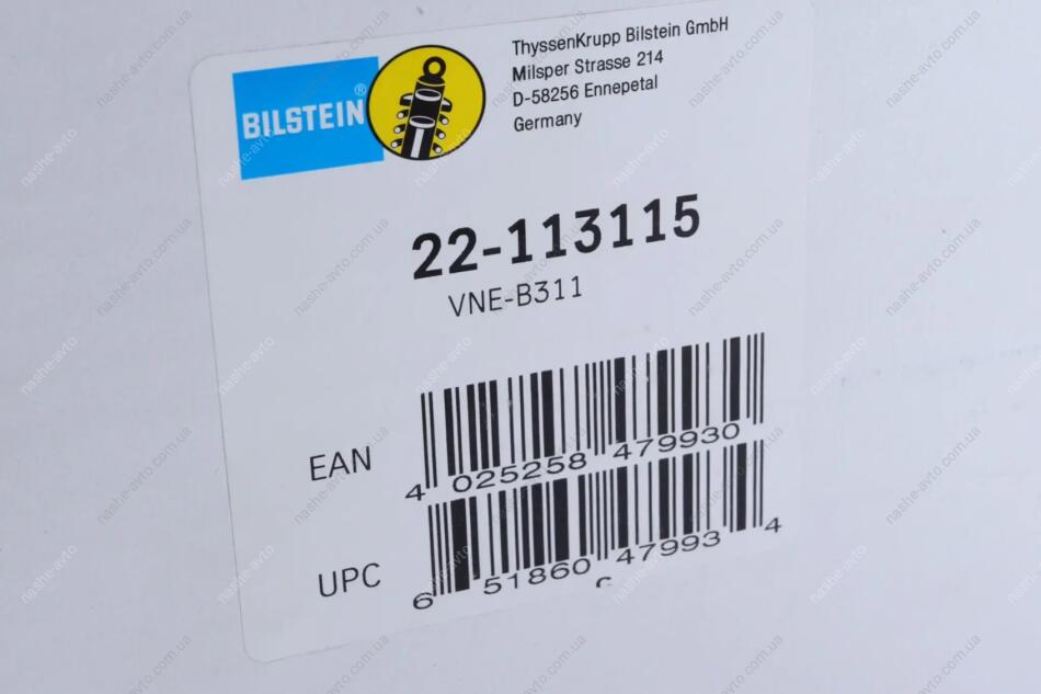 BILSTEIN — известный немецкий производитель, специализирующийся на газовых амортизаторах, стойках, пружинах и регулируемых подвесках для автомобилей. Продукция применяется в автоспорте и на гражданских автомобилях, используется как оригинальная (OEM) на Mercedes-Benz, BMW, Porsche, Audi и других марках.