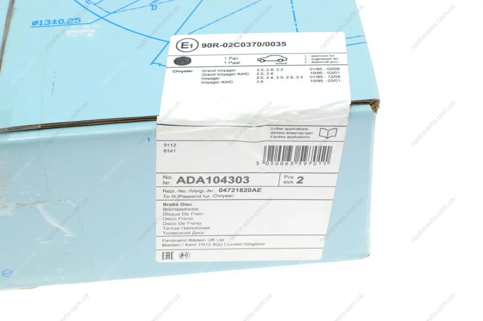 Диск гальмівний(к-т) BLUE PRINT ADA104303