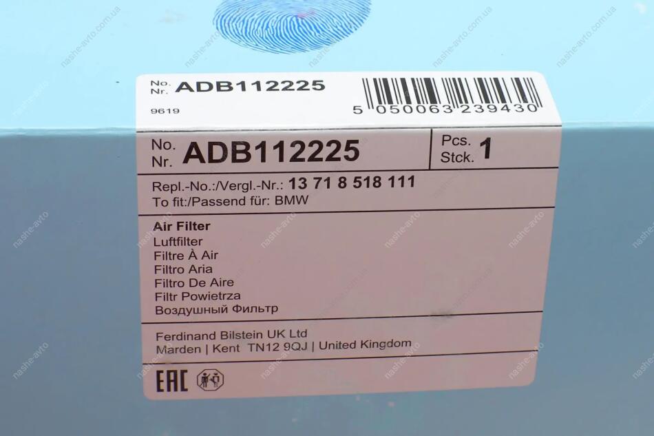 Фільтр повітряний BMW BLUE PRINT ADB112225