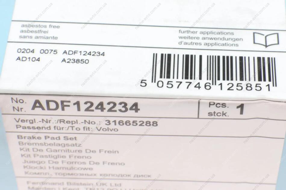 Комплект гальмівних колодок з 4 шт. дисків BLUE PRINT ADF124234