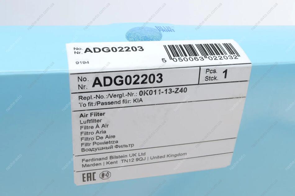 Фільтр забору повітря BLUE PRINT ADG02203