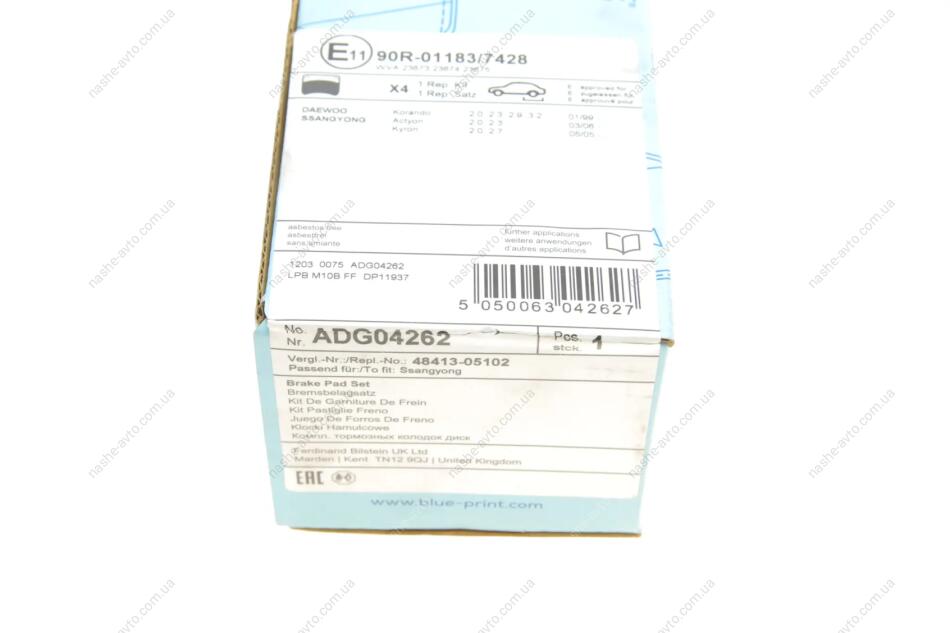 Комплект гальмівних колодок з 4 шт. дисків BLUE PRINT ADG04262