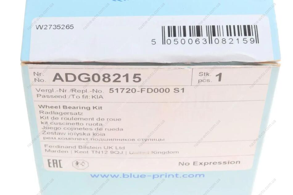 К-т підшипника ступиці BLUE PRINT ADG08215