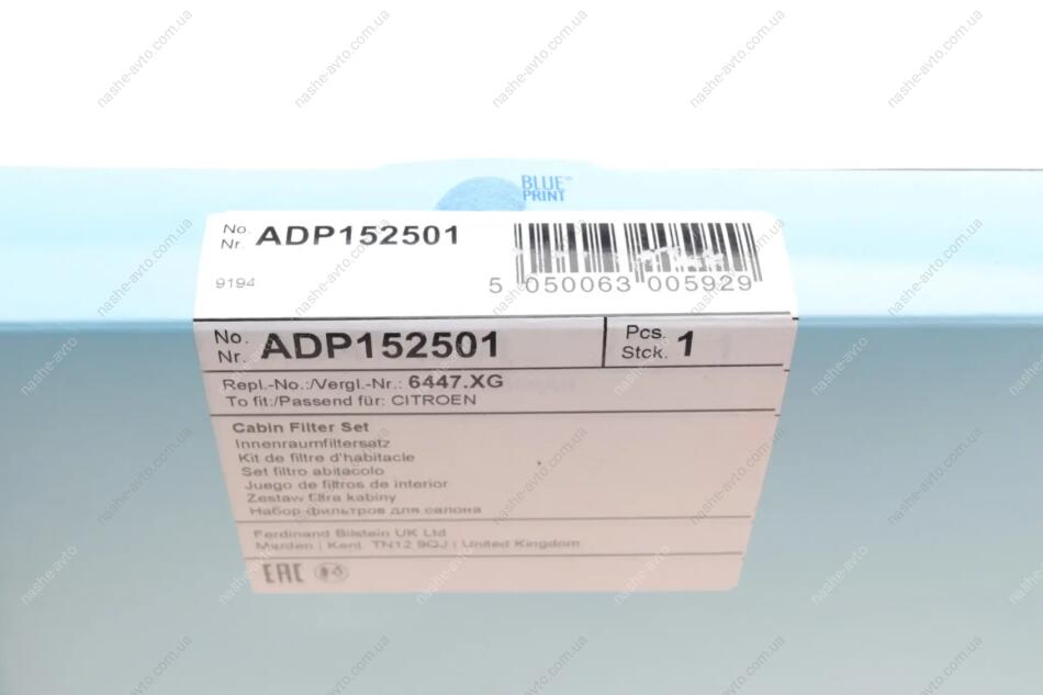 Фільтр салона (компл.) Citroen, Opel, Peugeot, Toyota BLUE PRINT ADP152501