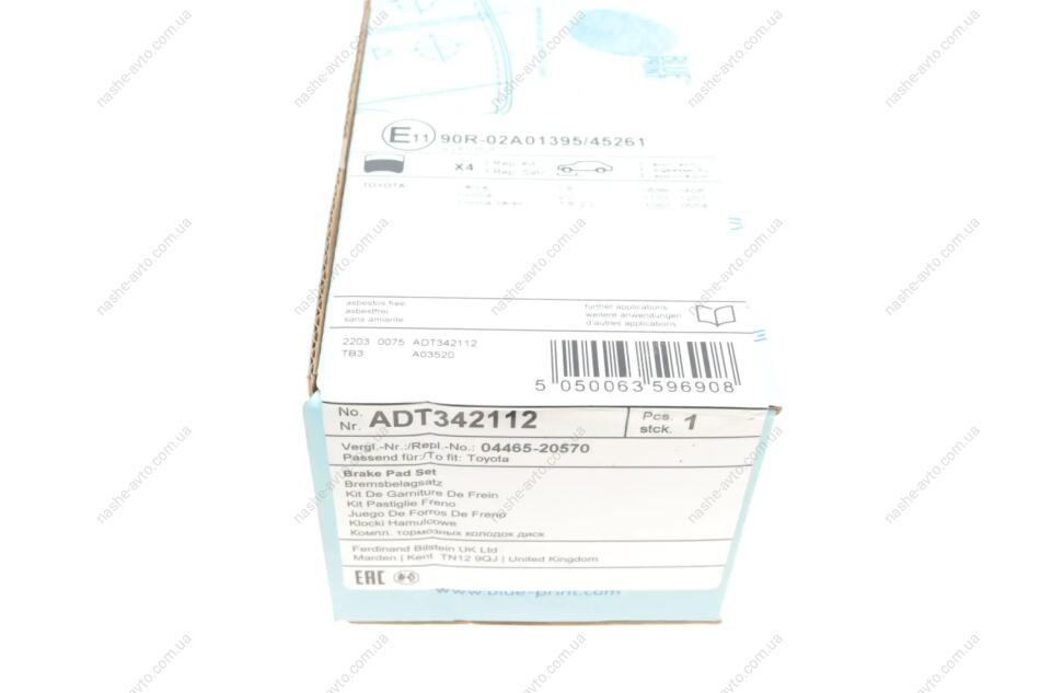 Комплект гальмівних колодок з 4 шт. дисків BLUE PRINT ADT342112