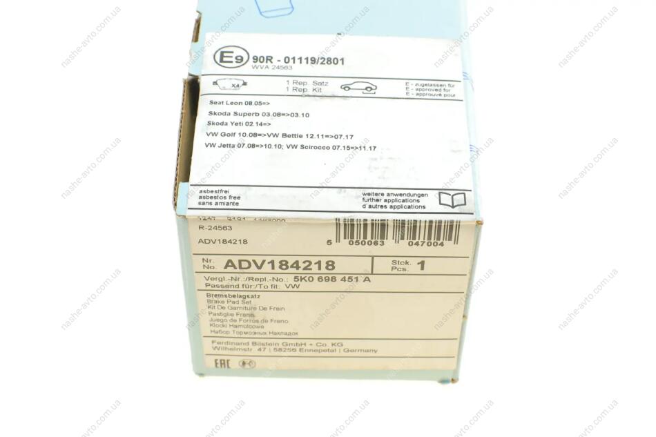Комплект гальмівних колодок з 4 шт. дисків BLUE PRINT ADV184218