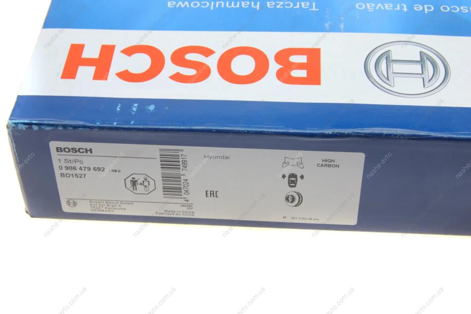 ДИСК ГАЛЬМIВНИЙ ПЕРЕДНIЙ BOSCH 0 986 479 692
