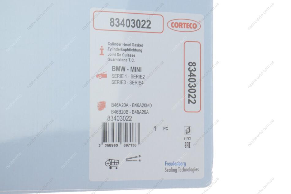 Прокладка головки блоку циліндрів CORTECO 83403022