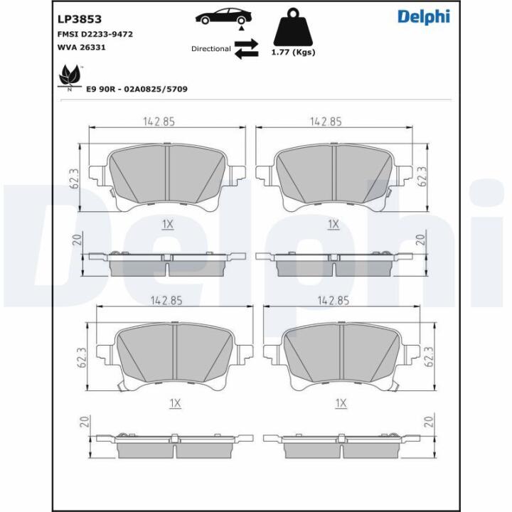 Колодки гальмівні дискові (комплект 4 шт) Delphi LP3853