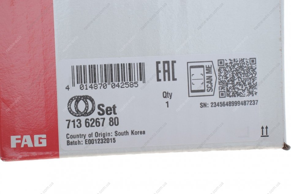 Підшипник маточини (комплект) FAG 713 6267 80