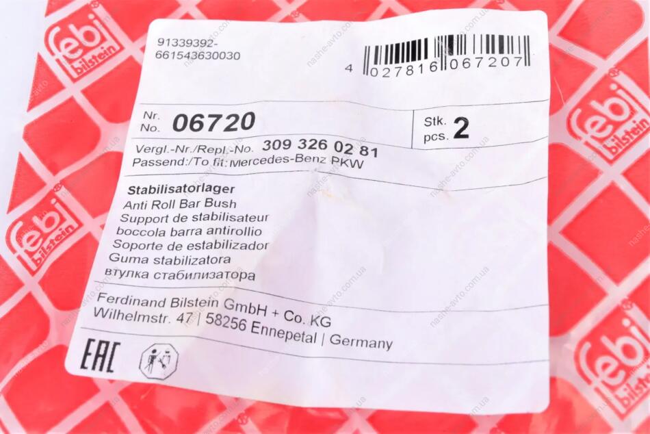 Подушка(втулка) стабілізатора FEBI BILSTEIN 06720