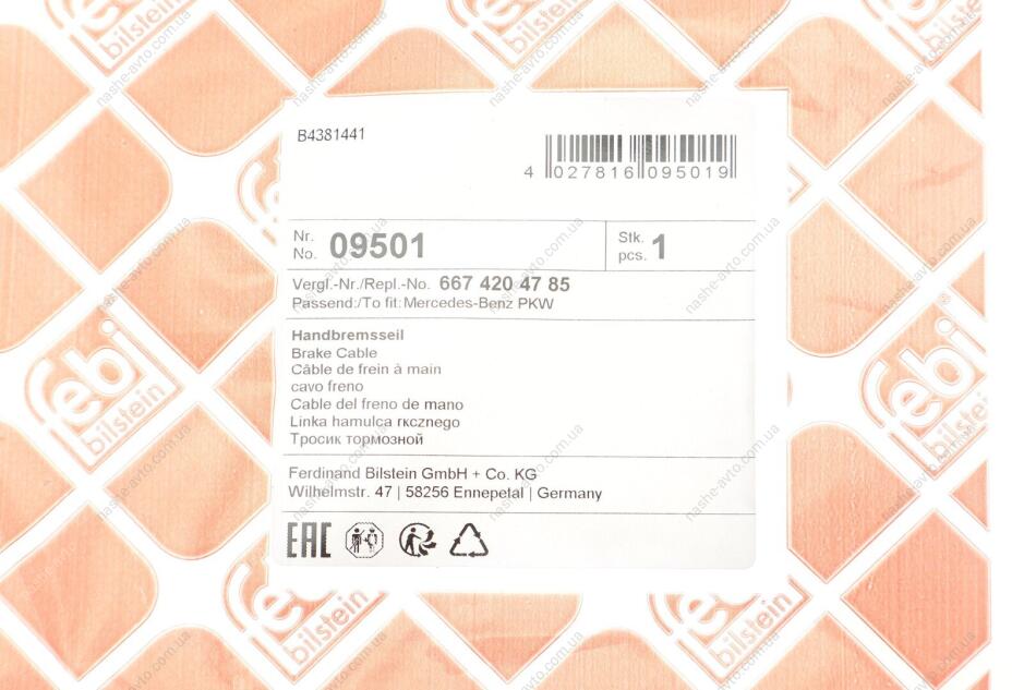 Трос ручного гальма Mercedes Sprinter 212 D / Merc FEBI BILSTEIN 09501