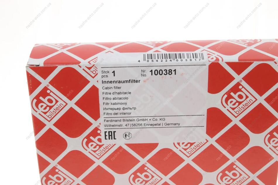 Змінний фільтруючий елемент повітряного фільтра салону FEBI BILSTEIN 100381