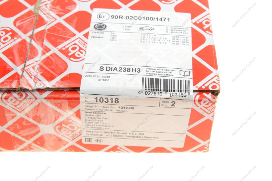 Диск гальмівний FEBI BILSTEIN 10318