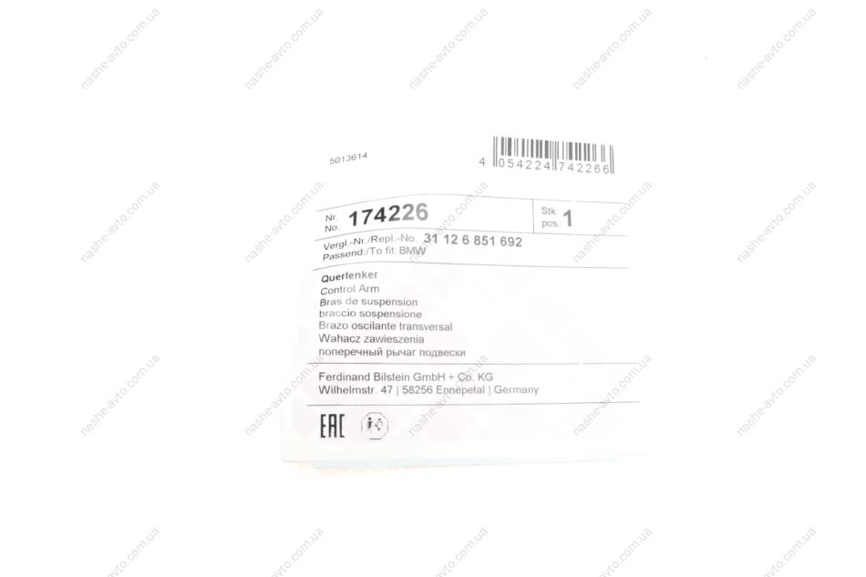 Важіль підвіски з сайлентблоком, кульовою опорою і гайкою FEBI BILSTEIN 174226
