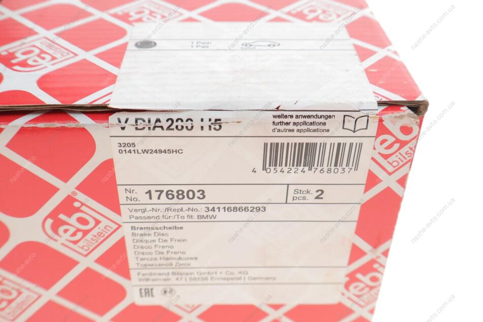 Диск гальмівний(к-т) FEBI BILSTEIN 176803