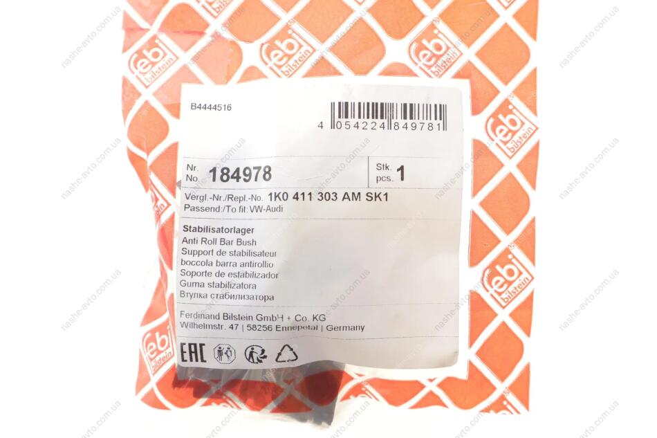 Подушка(втулка) стабілізатора FEBI BILSTEIN 184978