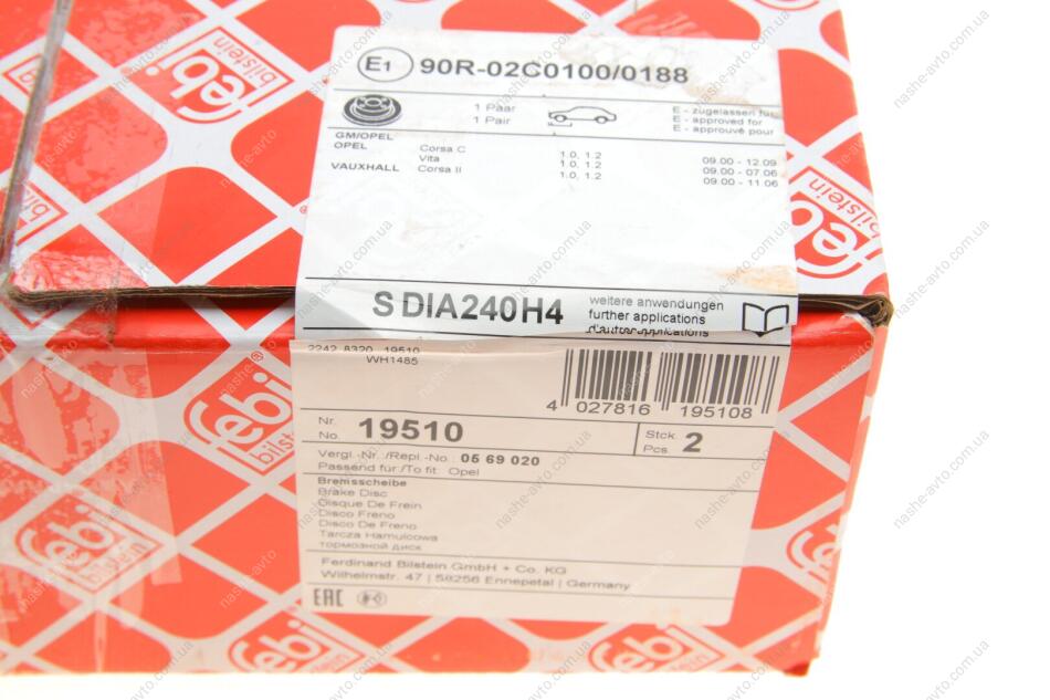 Диск гальмівний(к-т) FEBI BILSTEIN 19510