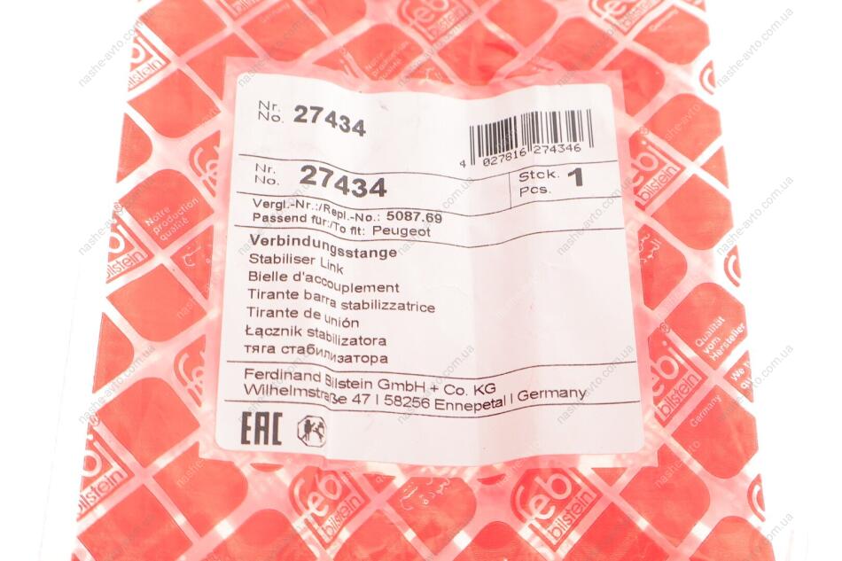 Кронштейн(тяга) стабілізатора з гайками FEBI BILSTEIN 27434