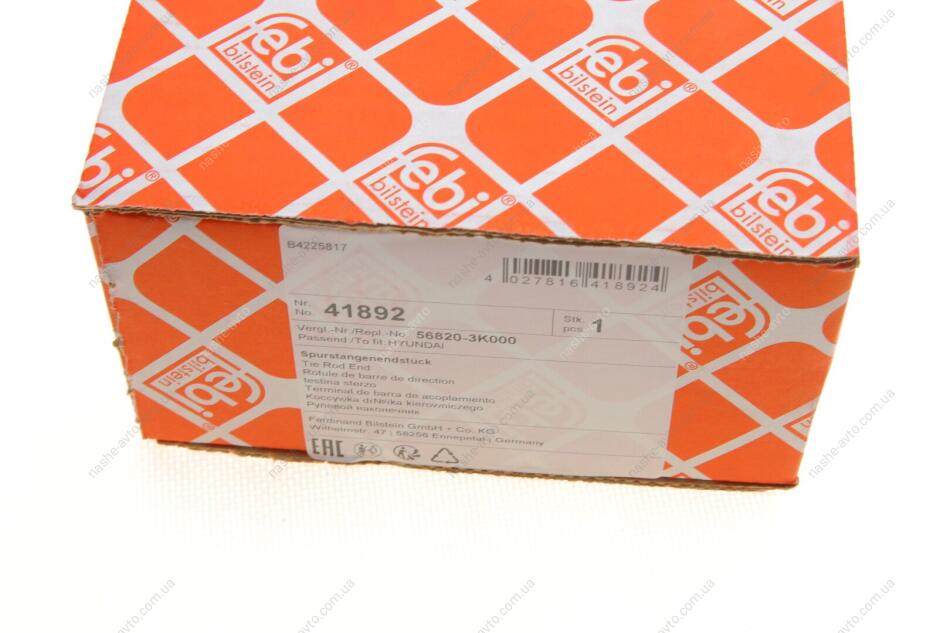 Наконечник рульової тяги з стопорною гайкою і шплінтом FEBI BILSTEIN 41892