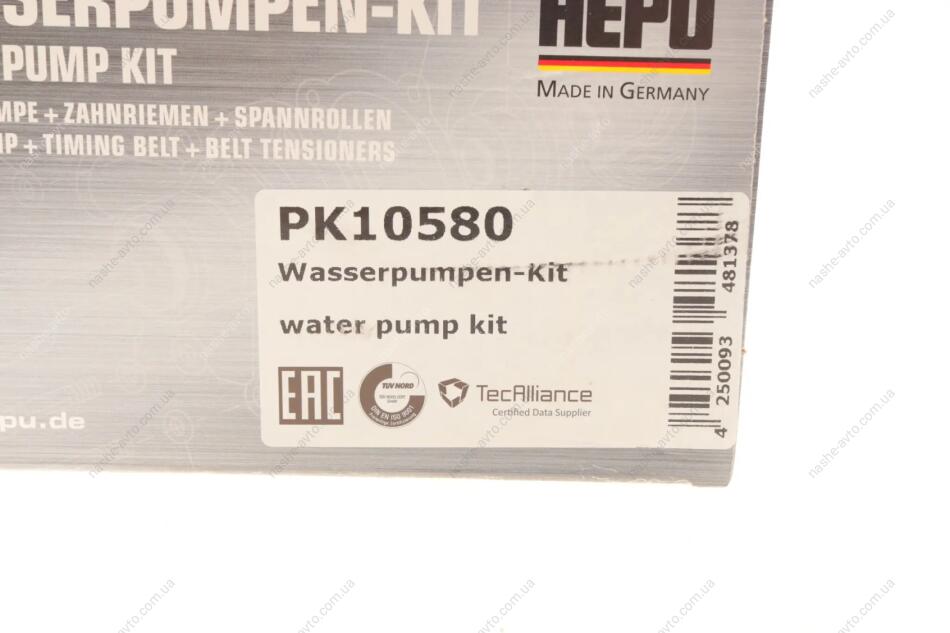Комплект ременя ГРМ з помпою води HEPU PK10580