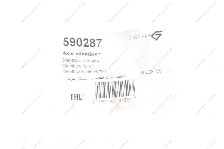 Сайлентблок балки задней Citroen Berlingo 2001-, Peugeot Partner 2002- HUTCHINSON 590287