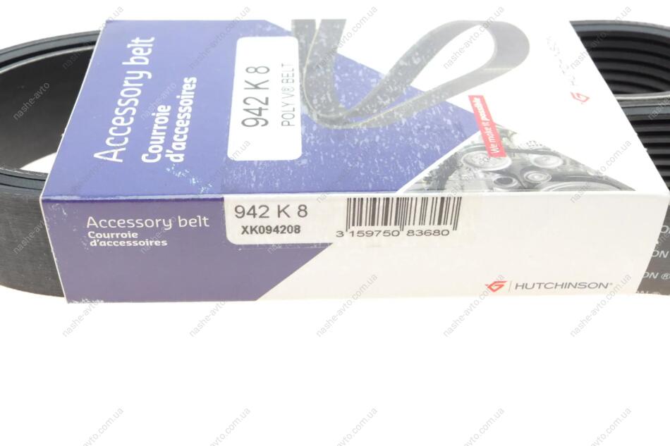 Ремінь генератора (поліклиновий) HUTCHINSON 942 K 8