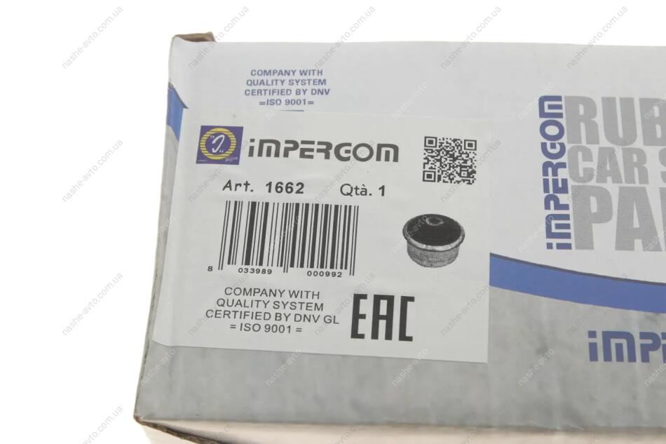 IMPERGOM — итальянский бренд, специализирующийся на производстве резинотехнических изделий и пластиковых компонентов для подвески, двигателя, трансмиссии и системы охлаждения. В ассортимент входят сайлентблоки, опоры двигателя, пыльники, патрубки, прокладки и другие элементы, обеспечивающие надёжную и долговечную работу автомобиля. Продукция IMPERGOM совместима с большинством европейских и азиатских авто.