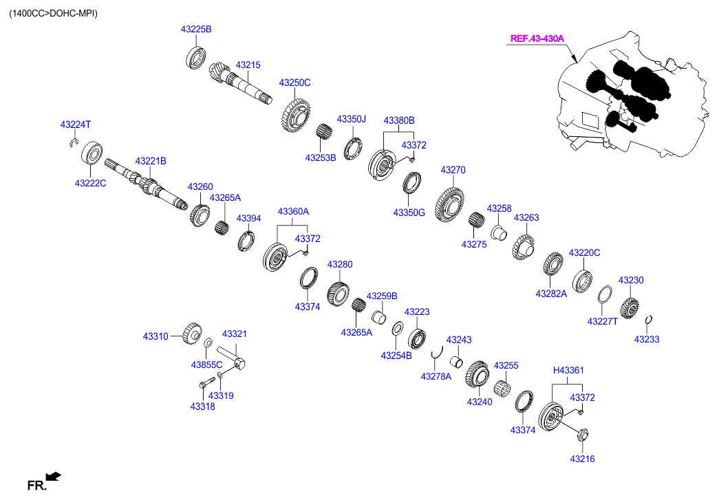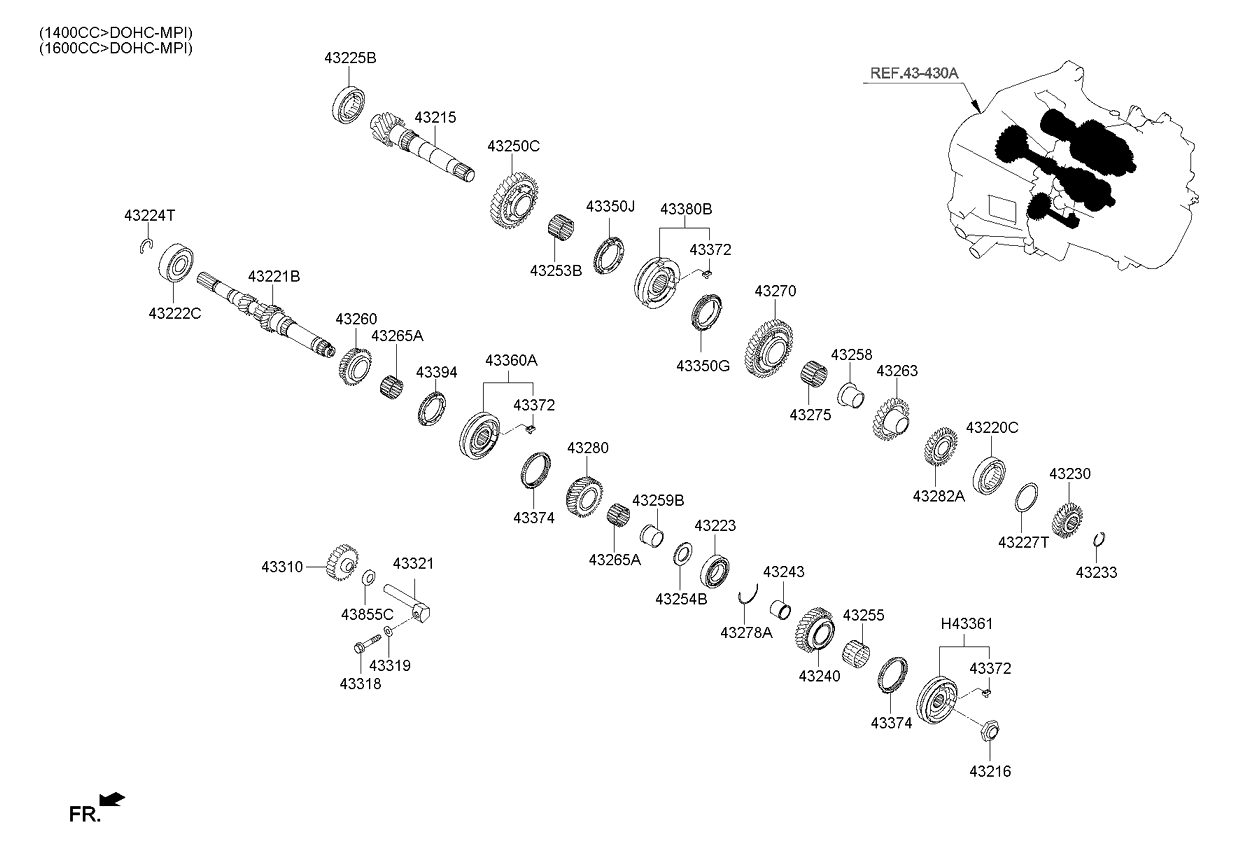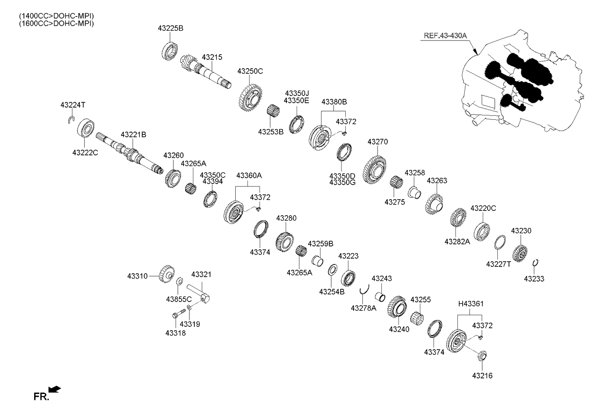 (Рабочий объем двигателя: 1600 CC - GAMMA)(АКП: MANUAL T/M - 5 SPEED 2WD) Шестерни механической КП (02/02) (Рабочий объем двигателя: 1600 CC - GAMMA)(АКП: MANUAL T/M - 5 SPEED 2WD) |