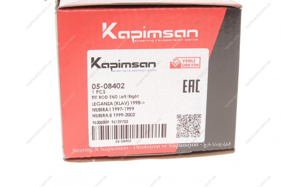 KAPIMSAN — турецкий бренд автозапчастей, специализирующийся на производстве деталей подвески и рулевого управления. Компания поставляет рулевые наконечники, шаровые опоры, тяги, сайлентблоки и другие элементы шасси, подходящие для широкого спектра легковых и коммерческих автомобилей. Продукция KAPIMSAN производится на собственных мощностях в Турции с соблюдением международных стандартов качества, что делает её надёжной альтернативой оригинальным запчастям по доступной цене.