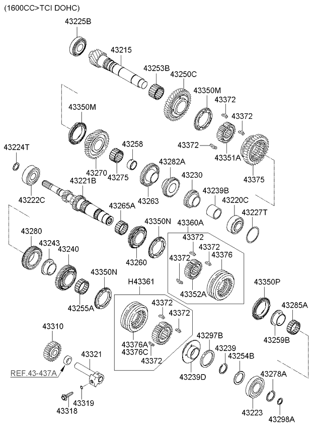 (Рабочий объем двигателя: 1100 CC - U) Шестерни механической КП (02/02) (Рабочий объем двигателя: 1100 CC - U) |