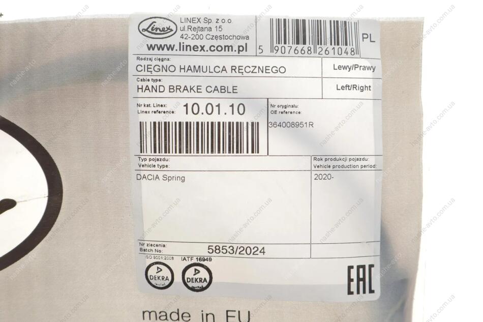 LINEX — польский бренд, специализирующийся на производстве тросов сцепления, газа, ручного тормоза, капота, багажника и других элементов управления. Компания работает на рынке автозапчастей более 50 лет и зарекомендовала себя как производитель качественной продукции для европейских, азиатских и американских автомобилей. Изделия LINEX отличаются точностью изготовления, устойчивостью к износу и широким ассортиментом.