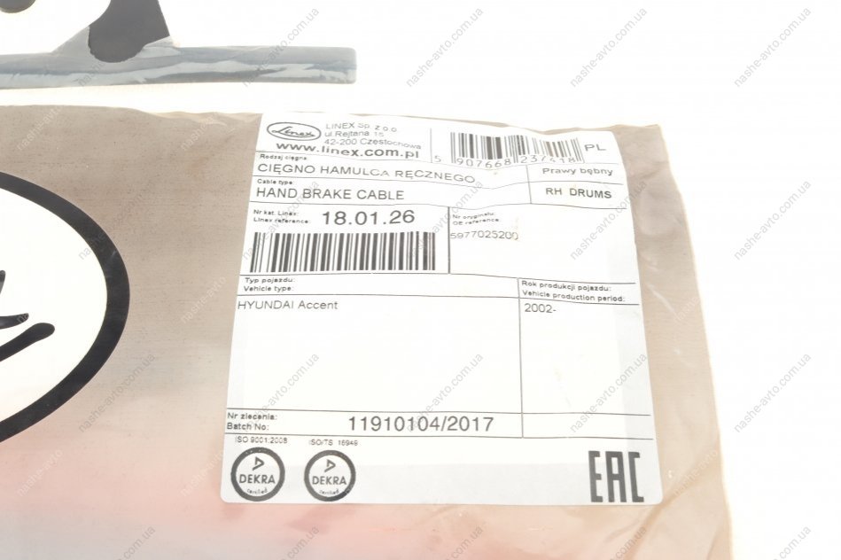 Трос ручного гальма LINEX 18.01.26