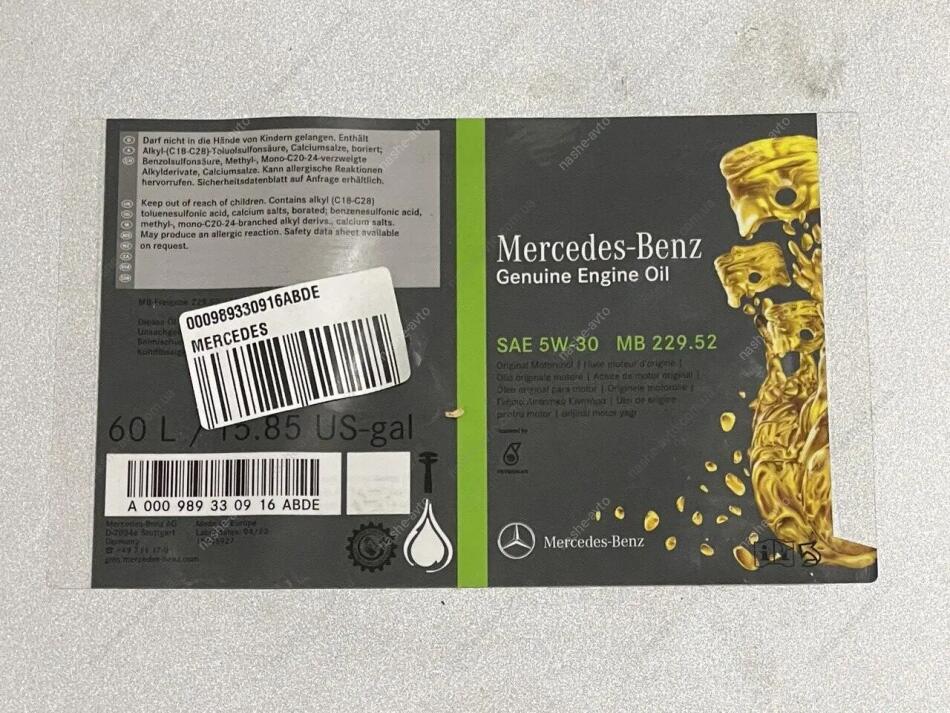 Олива моторна 5W-30 MB 229.52 (60 Liter) MERCEDES-BENZ 000989330916ABDE