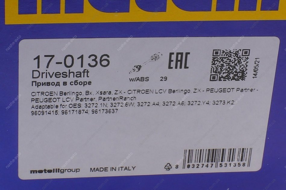 Привідний вал Metelli 17-0136
