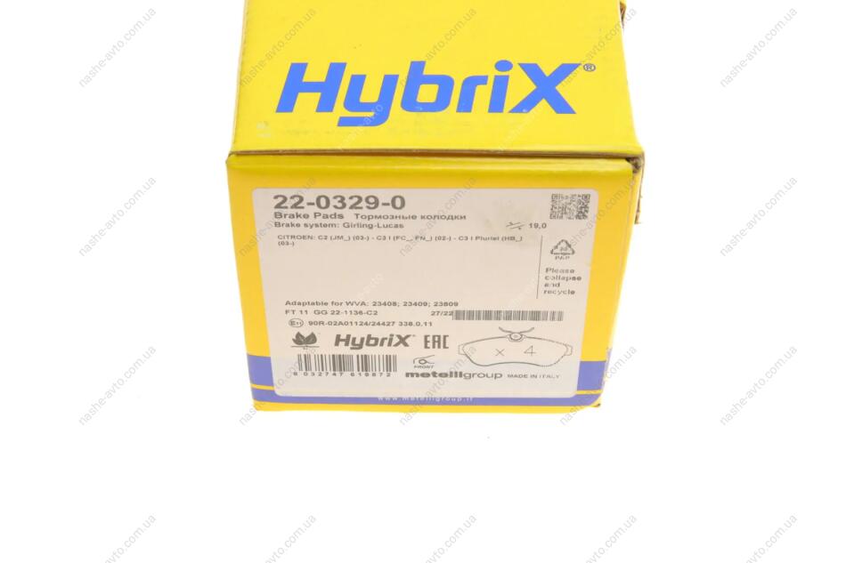 Комплект гальмівних колодок (дискових) Metelli 22-0329-0