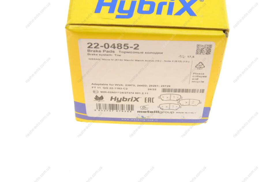 Комплект гальмівних колодок (дискових) Metelli 22-0485-2