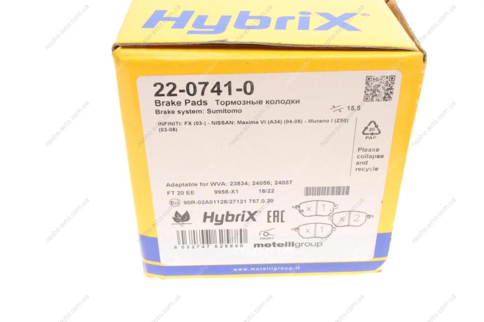 Комплект гальмівних колодок (дискових) Metelli 22-0741-0