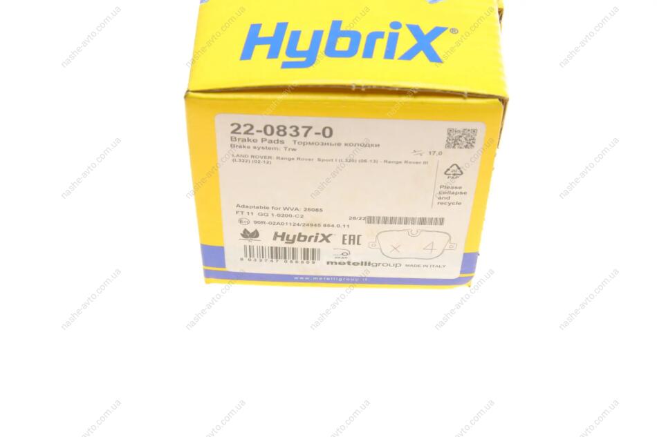 Комплект гальмівних колодок (дискових) Metelli 22-0837-0