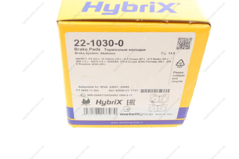 Комплект гальмівних колодок (дискових) Metelli 22-1030-0