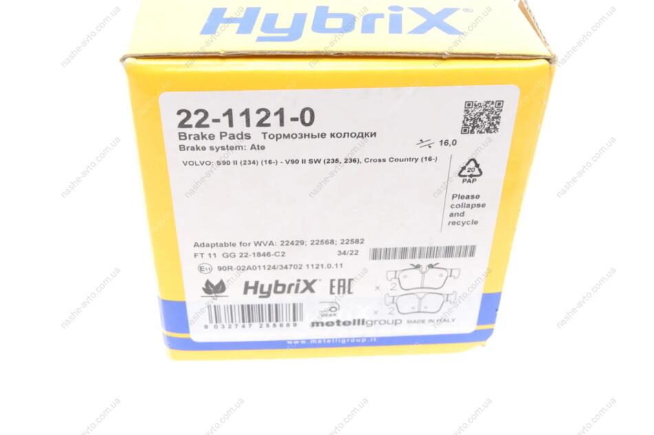 Комплект гальмівних колодок (дискових) Metelli 22-1121-0