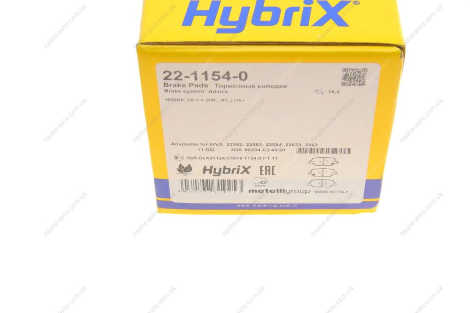 Комплект гальмівних колодок (дискових) Metelli 22-1154-0