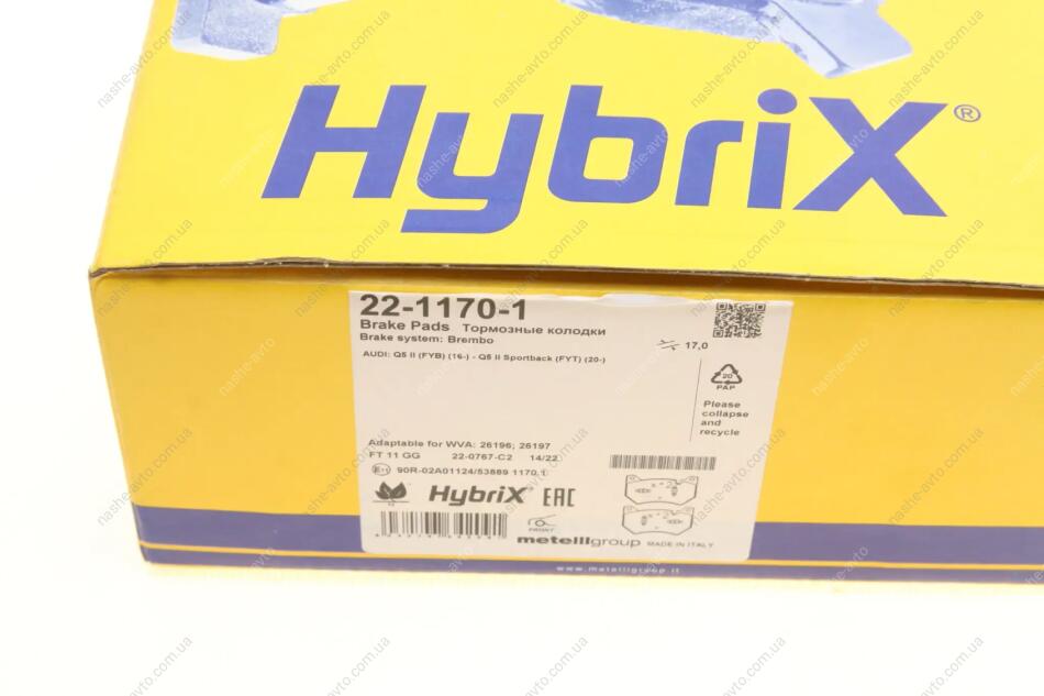 Комплект гальмівних колодок (дискових) Metelli 22-1170-1