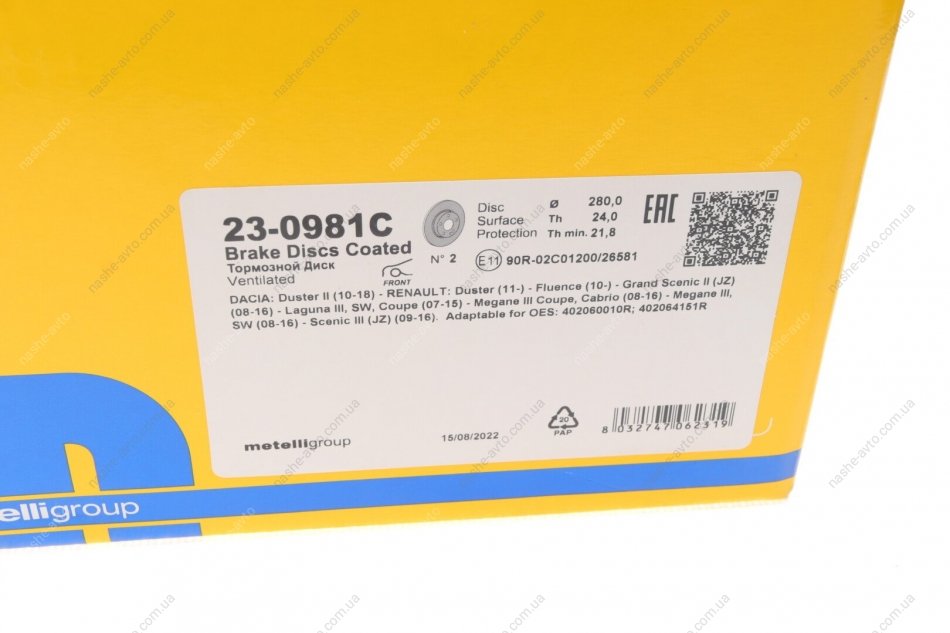 Диск гальмівний Metelli 23-0981C