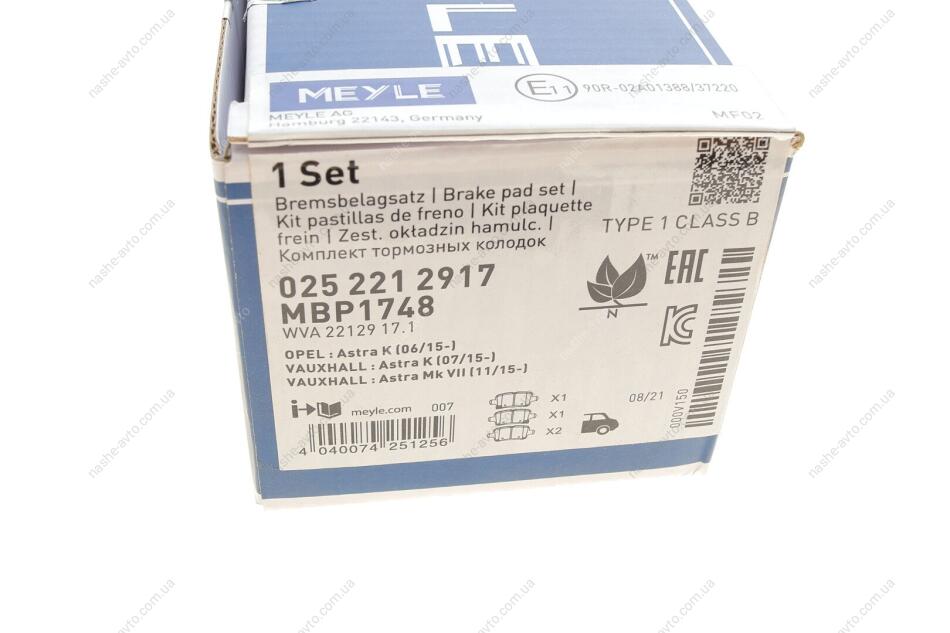 Комплект гальмівних колодок MEYLE 025 221 2917