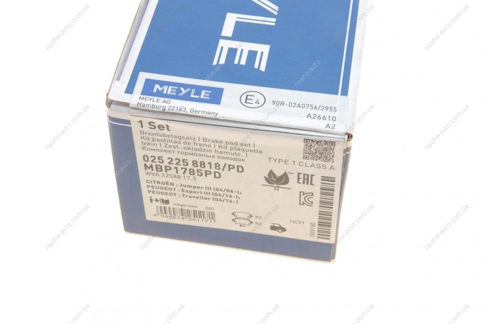 Комплект гальмівних колодок MEYLE 025 225 8818/PD